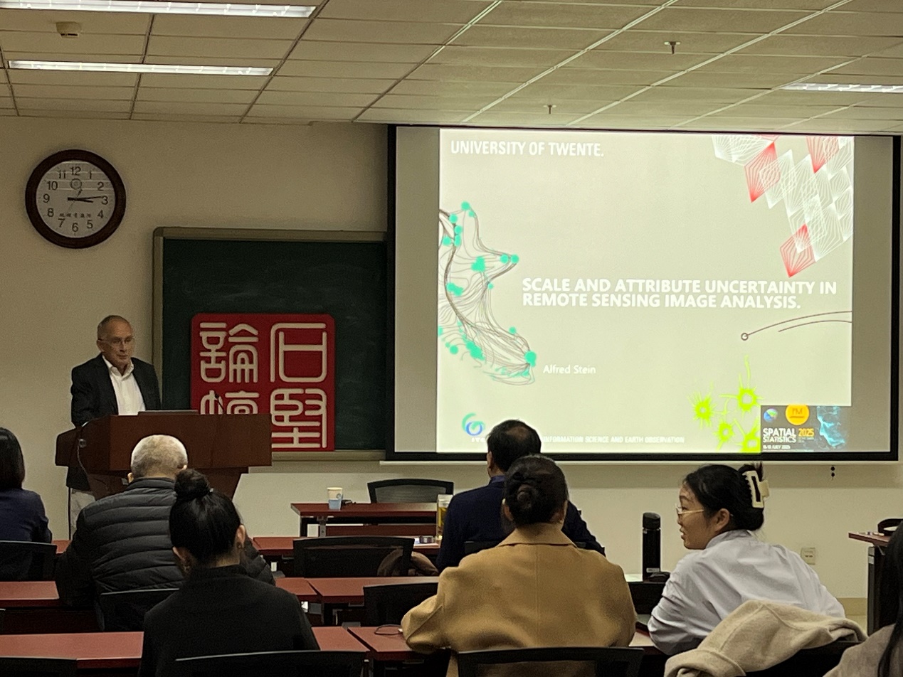 2024年11月11日下午,資源與環境信息系統國家重點實驗室“石堅論壇”第71講在中國科學院地理資源所A04214會議室順利舉行。中山大學的趙羲副教授和荷蘭特溫特大學的Alred Stein教授分別作主題為“北極海冰快速減少下的現場考察與遙感反演”和“Scale and attribute uncertainty in remote sensing image analysis”的報告。王勁峰研究員主持該論壇。