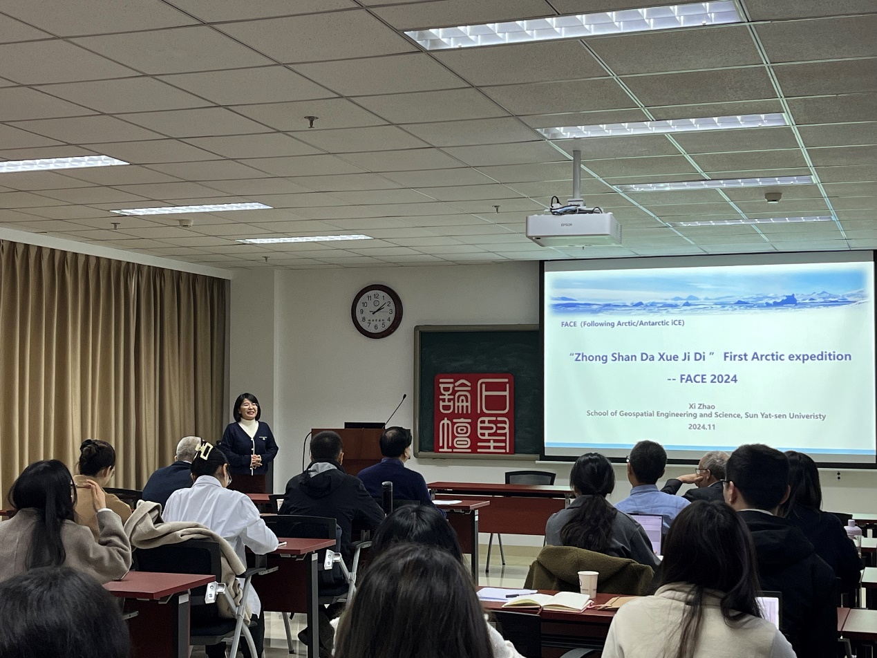 趙羲是中山大學極地研究中心副主任,從事極地海冰遙感研究。2019年參加中國第36次南極科學考察,2024年參加“中山大學極地”號首次北冰洋科學考察,入選世界100名極地女性科學研究者名單。她主持和參與了多個國家自然科學基金、南北極環境綜合考察與評估專項、國家重點研發專項等科研項目,發表SCI論文40余篇。擔任國際期刊Spatial Statistics,Ocean-Land-Atmosphere Research和Cold Regions Science and Technology編委。因發展不確定性理論并應用在極地海冰遙感中的突出貢獻,被國際空間精度研究學會授予青年科學家-James Smith獎章。本次論壇中,她首先為大家介紹了極地變化的嚴峻形勢,闡述了“中山大學極地”號極地考察任務,包括海洋學觀測、國產自主式水下航行器(AUV)測試、冰站與遙感同步以及氣象觀測等主要任務。強調了本次北極科考補充了國際極地觀測數據、有助于通過冰上實測數據(如冰面光譜)對遙感反演與產品的修正互補作用。